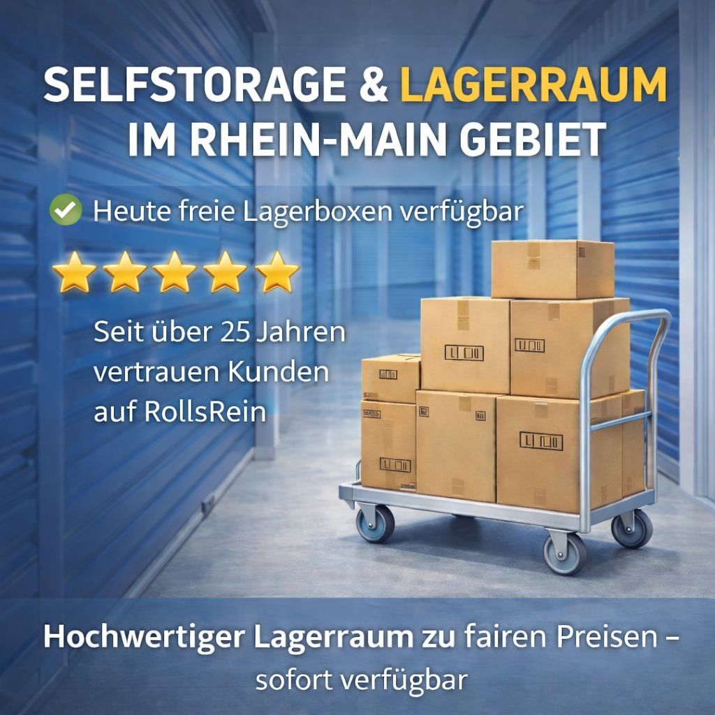 RollsRein betreibt aktuell keinen eigenen Lagerstandort direkt in Wiesbaden. Unsere modernen Selfstorage-Anlagen befinden sich im Rhein-Main-Gebiet und sind von Wiesbaden aus gut erreichbar. Viele Kundinnen und Kunden aus Wiesbaden nutzen unsere Standorte regelmäßig.